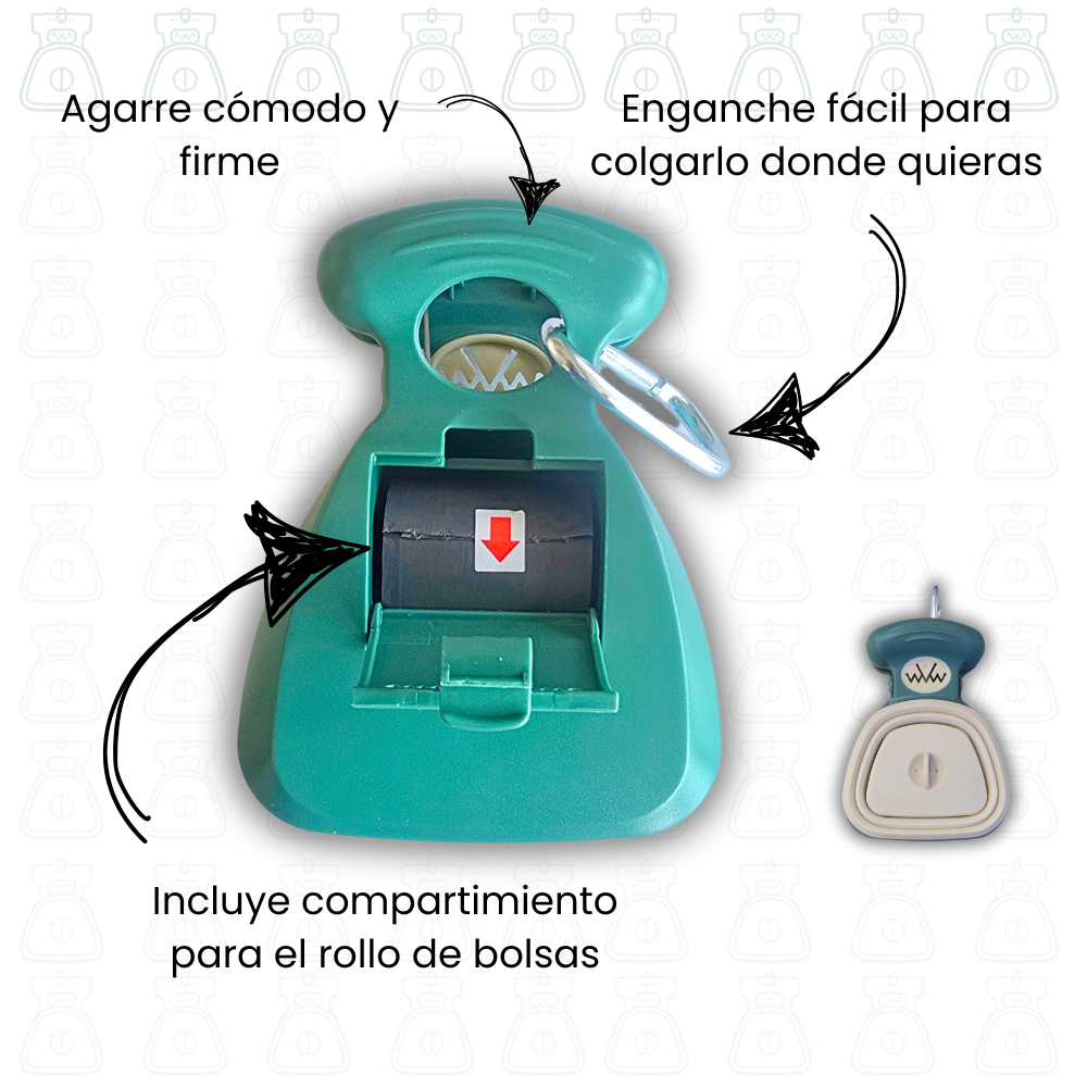 reutilizable, con bolsas biodegradables y cero contacto al recoger los desechos de tu perro.